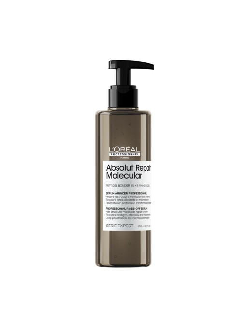 Absolut Repair Molecular е серия, предназначена за увредена коса, която възстановява 2 години увреждане на косата след първата употреба***. Всеки път, когато косата е увредена, тя губи пептиди, а Absolut Repair Molecular предлага възстановяване на пептидно, молекулярно ниво с научно доказана молекулярна ефикасност. Продуктите са обогатени с 5 различни аминокиселини и система за защита на пептидните връзки, като те работят на молекулярно ниво, за да възстановят молекулярната структура***, здравината, еластичността и движението на косата****.