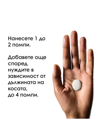 Нанесете на измита и подсушена с кърпа коса. Разделете косата на сектори и нанесете 1 помпa на всеки сектор. Не изплаквайте. Оформете косата.