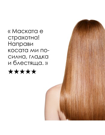 Действа интензивно в дълбочина, за да придаде до 97% повече сила на косата*. Осигурява термозащита до 230°*, до 85% повече контрол на накъсването и до 52% гладка коса. Предпазва косъма от външни въздействия. Има леко действие за лека на допир коса. *Инструментален тест след нанасяне на маска без изплакване Absolut Repair Molecular.