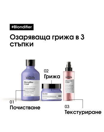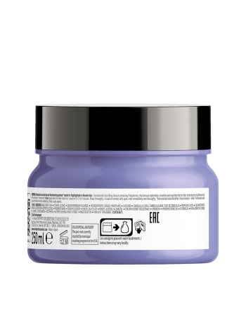 Възстановявяща и придаваща блясък маска за руса коса. Благодарение на професионалната си формула, обогатена с екстракт от зърно акай, съдържащ полифеноли, маската спомага за подобряването на многоизмерния блясък на русата коса. Косата е озарена*, мека и лесна за разресване от дължините до краищата.