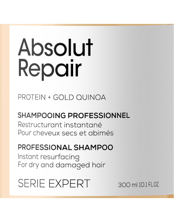 Шампоан за много изтощена коса. Моментално почиства и възстановява* косата, като я оставя мека и с невероятен блясък. Формулата със златна киноа и пшеничен протеин прави косата лека, без да я утежнява.