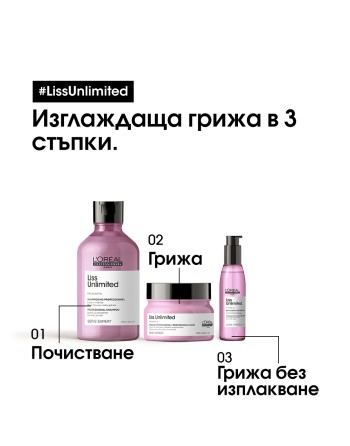 Нанесете на измита с шампоан и подсушена с кърпа коса като финален жест за перфектно гладка коса. Без изплакване.