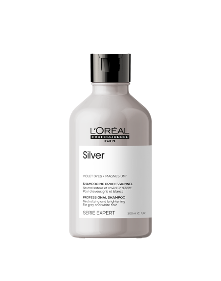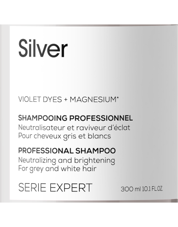 Неутрализиращ шампоан за побеляла или сива коса. Обогатен със сини колоранти, той почиства, елиминира жълтите оттенъци и разкрива естествения блясък на косата. Подсилва цвета, като омекотява косата. Съдържа масло от Бабасу и Серамиди.