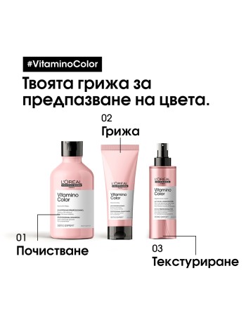 Балсам за блясък на боядисана коса с кремообразна текстура. Спомага за подхранването на косата, като я прави блестяща, гладка и лесна за разресване. Формулата на продукта, обогатена с ресвератрол, помага за предпазването на цвета от избледняване и на косата от увреждане.