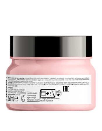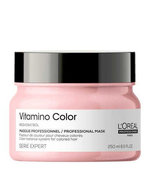 Маска, която осигурява блясък за боядисаната коса. Формулата на продукта, обогатена с ресвератрол, помага за предпазването на цвета от избледняване и на косата от увреждане. Цветът е защитен от избледняване до 8 седмици *, а косата предпазена. Запазва цвета на боядисаната коса и я защитава от външни агресии. *Инструментален тест след нанасяне на шампоан + балсам Vitamino Color.