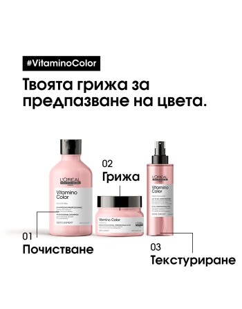 Mногофункционален спрей, предназначен за нуждите на боядисаната коса, който може да се използва преди сушене или преди оформяне на косата.