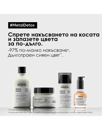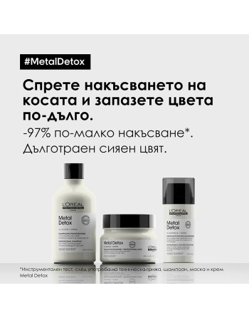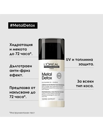 Концентриран крем за коса, който намалява накъсването на косата и помага за запазването на цвета на боядисаната коса. Обогатен с 1% гликоамин , той предпазва косъма от натрупване на метални частици (мед), които се съдържат във водата. Подходящ за суха, плътна, непокорна коса, склонна към накъсване. Предпазва косата от топлина до 230°C и съдържа активен UV филтър. Осигурява 72-часова интензивна хидратация на косата* и защита от накъсване до 72 часа*. *Инструментален тест.