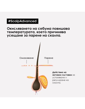 Дерморегулиращ шампоан, oбогатен с ниацинамид, витамин от семейство В3, познат с регулиращото и успокояващото си действие. Успокоява и почиства интензивно чувствителния скалп. След първата употреба кожата на главата е с 83% по-успокоена*, а косата до 49% по-хидратирана**. *Самооценка на 32 субекта след употребата на шампоан и маска Scalp Advanced . **Инструментален тест