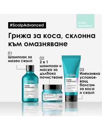 Грижа 2 в 1 с действие на шампоан и маска за интензивно почистване на скалпа.