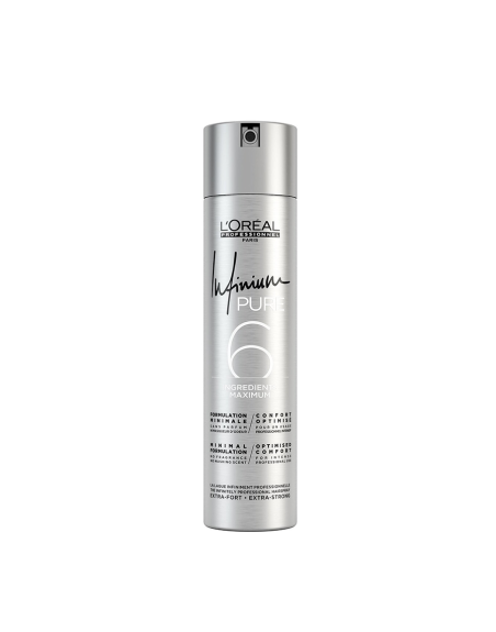 Infinium е легендарният лак за коса на L'Oréal Professionnel, който дава незабавна фиксация, без да спластява косата. Времето за изсъхване е под една секунда, а резултатите са естествена визия и блясък. Формула без аромат.