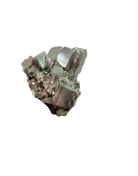 Често се среща в кубични или многоъгълни форми, а понякога се образува като сложни клъстери. Пиритът е ценен както в геологията заради своята роля в образуването на скали, така и в духовните практики, където се смята, че носи енергия за защита, просперитет и креативност.